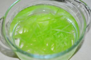 锅里烧开水,滴入几滴油、盐,将莴笋丝快速的焯烫后放入冰水中浸泡。豆腐丝焯烫至没有豆腥味。