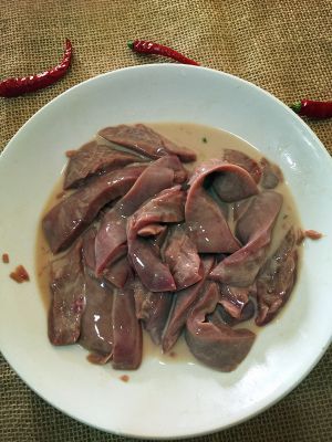 将猪腰加淀粉,豆瓣,蒜泥,白酒(白酒我加的是两汤匙)备用!