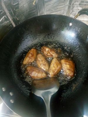 4:鸡翅倒入锅中,翻炒片刻