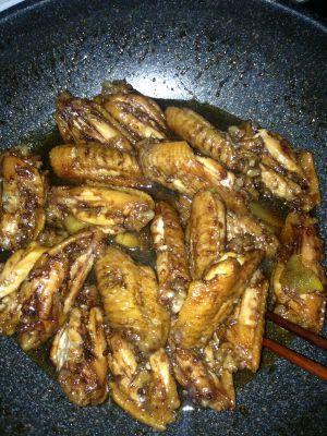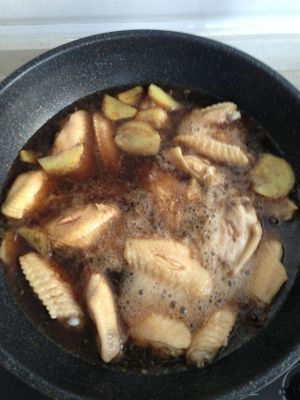 将适量的可乐和酱油(也可以加几滴料酒),小火烧至八分开,然后放入翅中,慢慢熬,直至收汁即可出锅啦!
