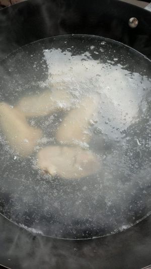 鸡中翅洗净,划口,加姜丝、料酒抓匀腌制10分钟