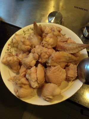 鸡翅切段,焯水去掉血沫。撒适量盐码在鸡翅上。