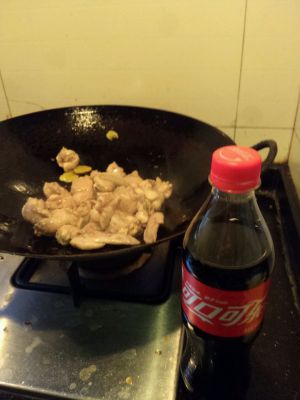 倒入可乐 放葱和姜加点盐和少量的糖 根据自己的口味 我比较喜欢吃甜 不喜欢的朋友可以不放糖 因为可乐也很甜的