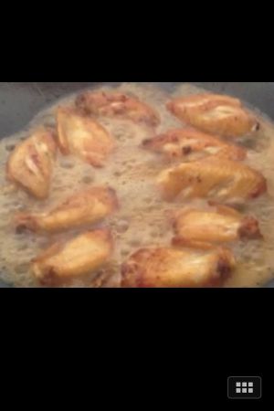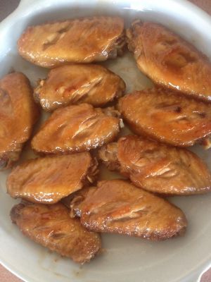 买腌制好的鸡翅中(数量根据人数而定),用油煎至两面泛黄