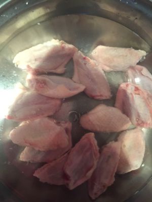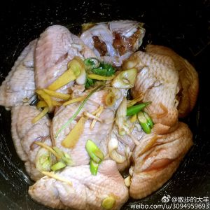 鸡翅洗干净。葱姜料酒酱油腌制半个小时。