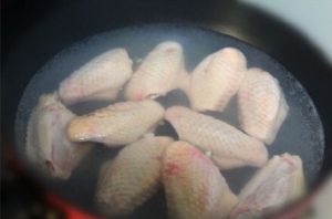 锅里放少量食用油,然后爆香葱姜,把鸡翅放入锅里翻炒几下