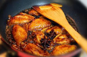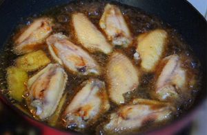 大火收汁,收汁时要不停的用铲子翻动,自制鸡翅表面裹上焦黄色,锅中有明油渗出即可