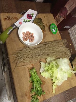 红薯粉先用温水泡半个小时,烧开水后煮红薯粉,透明后加入白菜