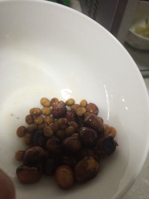 把花生和黄豆用煎锅炒熟,黄豆要比花生晚一些放到锅里,不然会糊