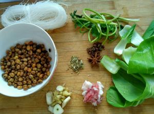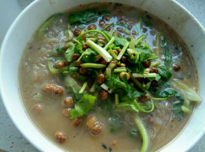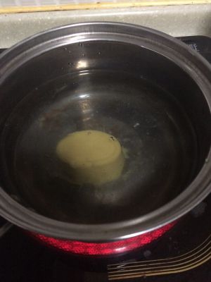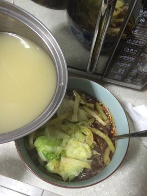 红薯粉真的很耐煮,做了这么多事才9分熟,所以盖盖,离火焖着就好了,然后把浓汤宝加水煮上,没有浓汤宝也无所谓啦!清水也是可以的,高汤就更讲究了