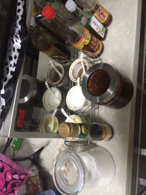 这些是要用到的调味料,也都是家里比较常用的,蒸鱼豉油2勺、糖1勺、烟1小勺、鸡精1勺、胡椒粉1/3小勺、麻油2勺、辣椒油2大勺、香油2滴、醋随自己心意