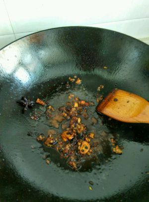 大料,花椒,小茴香,蒜姜辣椒面入锅,炒香