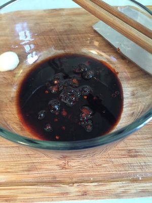 调味碗中倒入老抽、醋、盐,根据自己的口味适当添加,我还加了点老干妈豆豉。