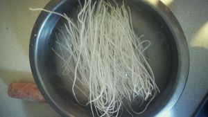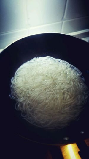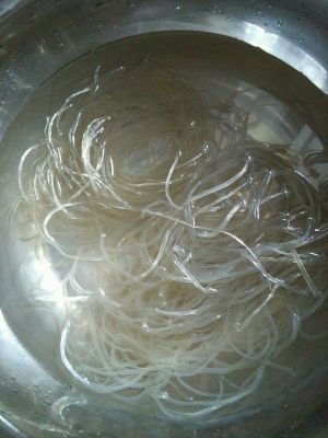 把煮好的粉丝捞出。加点煮粉丝的水。