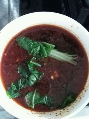 粉丝盛入碗里,撒上葱香菜即可,有条件的可以炸点花生,切点酸豆角放进去,此处如觉得淡了,可以再加调料调味。