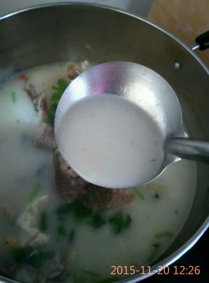 倒入汤锅中,放入豆腐,胡椒快炖40分钟。时间越长汤水越浓。没有汤锅就直接用煎锅开中火煲30分钟。