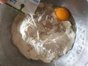 活面,加入酵母,鸡蛋,牛奶,也可以加黄油