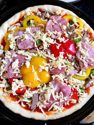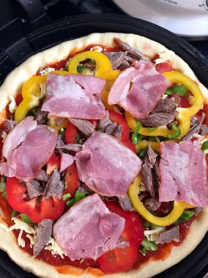 做法1:黑胡椒牛柳培根比萨电饼铛微波炉