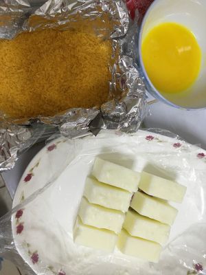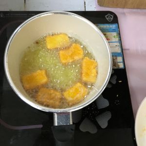 锅内倒入油,烧至六七成热后转小火,将奶糕放入油中炸至金黄取出即可。