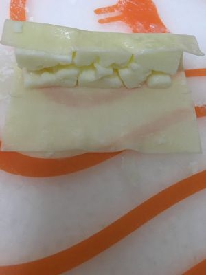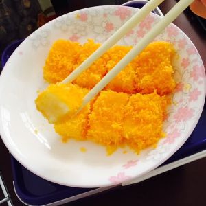 炸好后的样子,皮很酥脆,里面是软软甜甜的牛奶块,可以沾点果酱吃