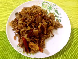 然后一次放孜然粉,辣椒粉……继续翻炒…