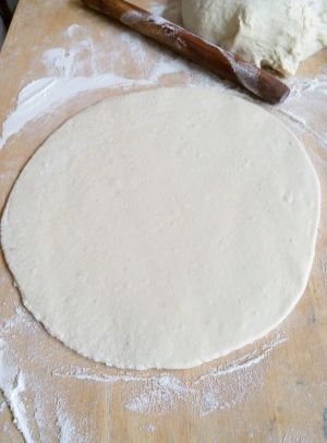 这时候面已经醒好了,把面擀成小饼的形状,记得擀面时先把电饼铛预热