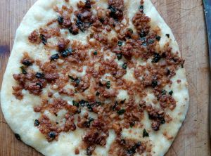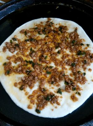 第三次擀开后撒上白糖,不喜甜的可以撒葱花。