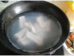 排骨放入锅内,加水煮开,煮出血污浮沫,捞出清洗干净。