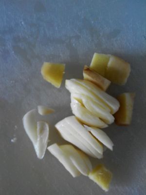 准备小块姜切片,胡椒一些,排骨半斤,瘦肉少许