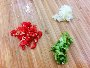 重点讲下蘸碟的配制,小米椒、姜、香菜切碎,重点是姜一定要切得够碎才入味。