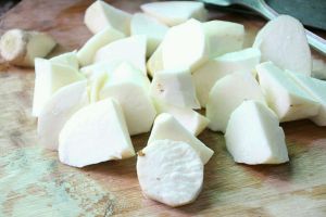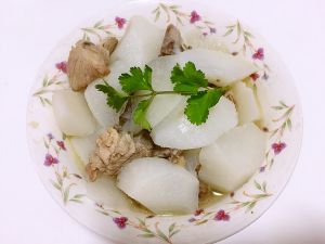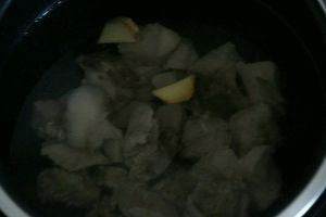 炖锅里另外倒入清水烧开,放入滤净的排骨和姜片,炖煮30分钟,再放入白萝卜炖煮15分钟左右即可。