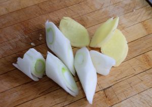 排骨剁成一寸左右的段,洗净滤干水分,生姜切片备用;