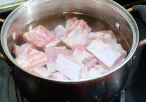 水开后会把排骨里的血沫煮出来,煮个两分钟就可以了;