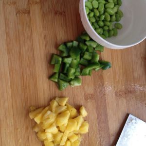 菠萝切丁,青椒切丁