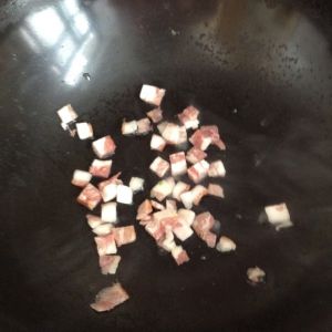培根丁入锅翻炒至熟捞出