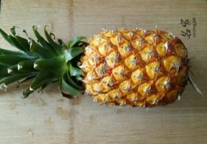 把鸡蛋炒好,米饭倒入翻炒后,把菜倒入翻炒,搅拌成颗粒状,导入菠萝搅拌,稍后盛出