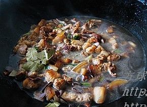 用小火焖1小时,在焖制的过程中要多翻炒一下,以防黏底。