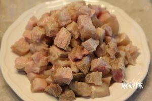 煮过的五花肉用冷水冲洗血沫,切小方块