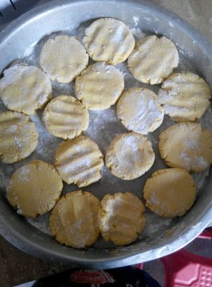 做成小小剂子,我是用手圧的,自家人吃的,不讲究造型