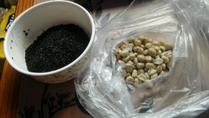 1.前面没拍相片,先把南瓜蒸熟搅烂加糯米粉(喜欢甜的可以在里面加入适量的白糖跟炼奶)和成面团待用。(蒸出来的南瓜水分已很多,无需加水,陆续加入糯米粉直至成面团,有点粘手。)将黑芝麻花生分别炒下直至出香味,花生去皮捣碎,芝麻捣碎,待用。