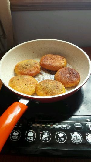 将它用手拍成圆饼状,放油锅炸至两面金黄既可!