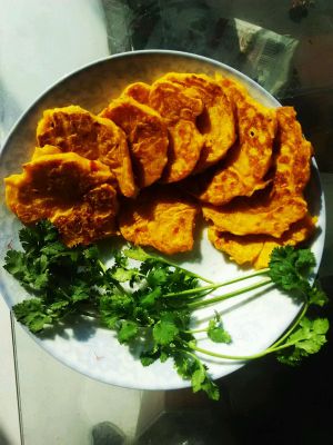平底锅放少许油,将南瓜饼煎至两面金黄即可,食用时淋上蜂蜜。