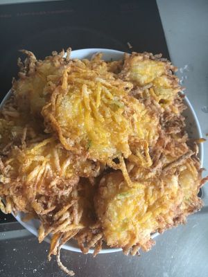 南瓜蒸熟捣成泥加糯米粉揉成团!