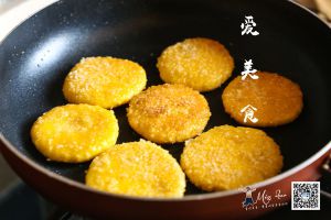 煎南瓜饼之前,首先要冷锅,倒一层薄薄的油,用小火将南瓜饼煎至金黄即可。