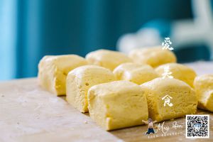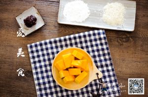 准备好南瓜去皮放入蒸锅中蒸熟捣烂一再一点点加入糯米粉,直到糯米粉不粘手可搓成长条为止。