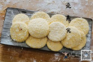 用饼干模具将其压成一个个星型造型再放入油锅煎