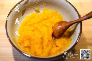 将南瓜去皮切块蒸熟,捣烂成泥。