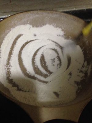 小火炒熟糯米粉2。糯米粉会变成有点黄即可。这个用做包馅时候防粘手的