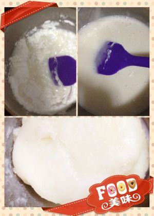 把糯米粉1,糖,玉米粉,黄油,牛奶放碗里搅拌均匀。盖上保鲜膜密封。然后隔水蒸,根据火候不同,差不多5到10分钟 变成如图颜色,看起来全熟了。晾凉