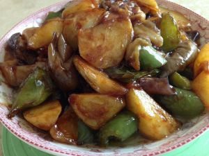 土豆,茄子,胡萝卜,锅巴就是这个菜的主料。